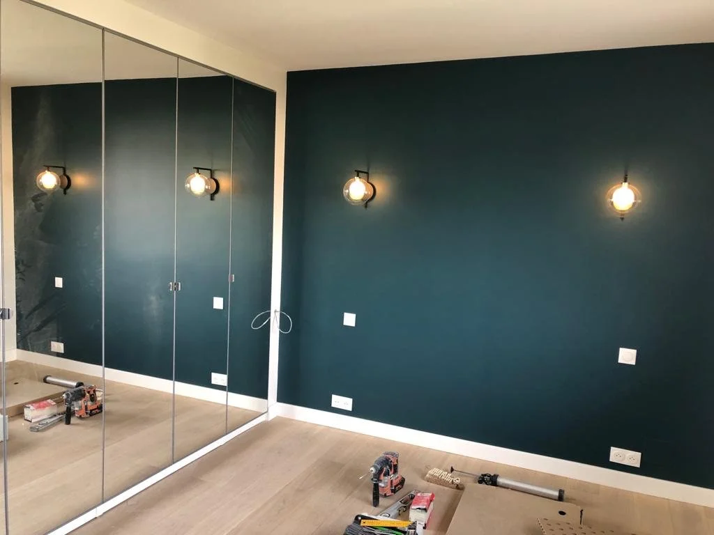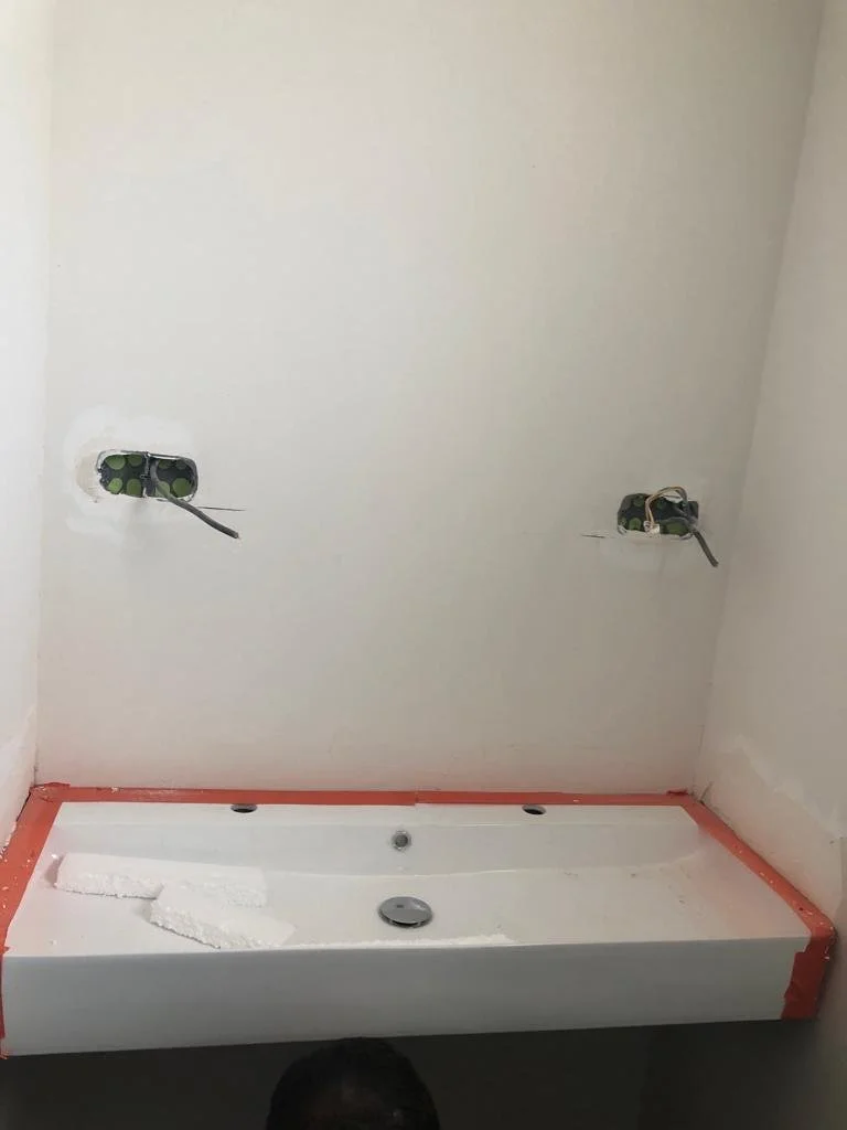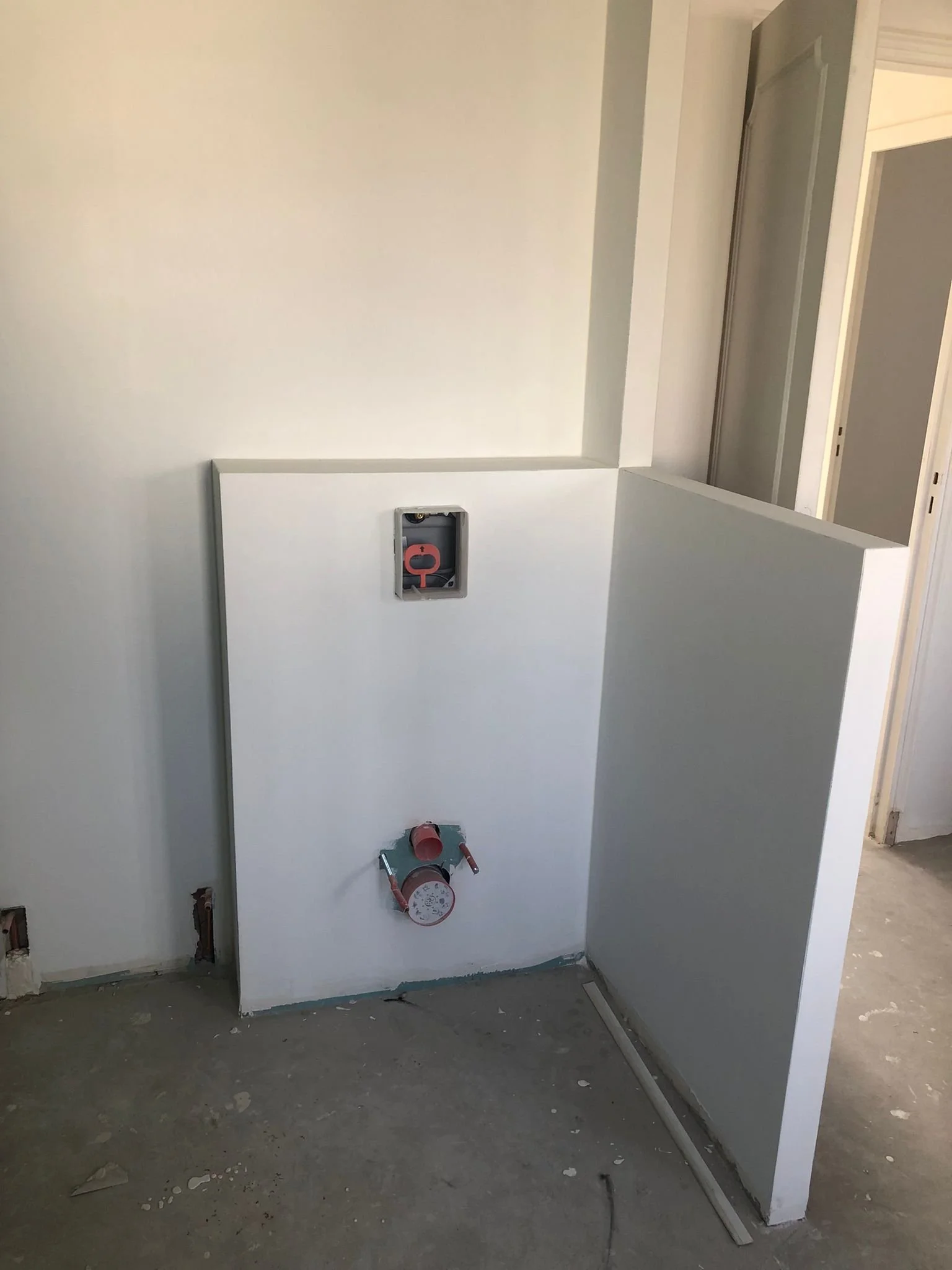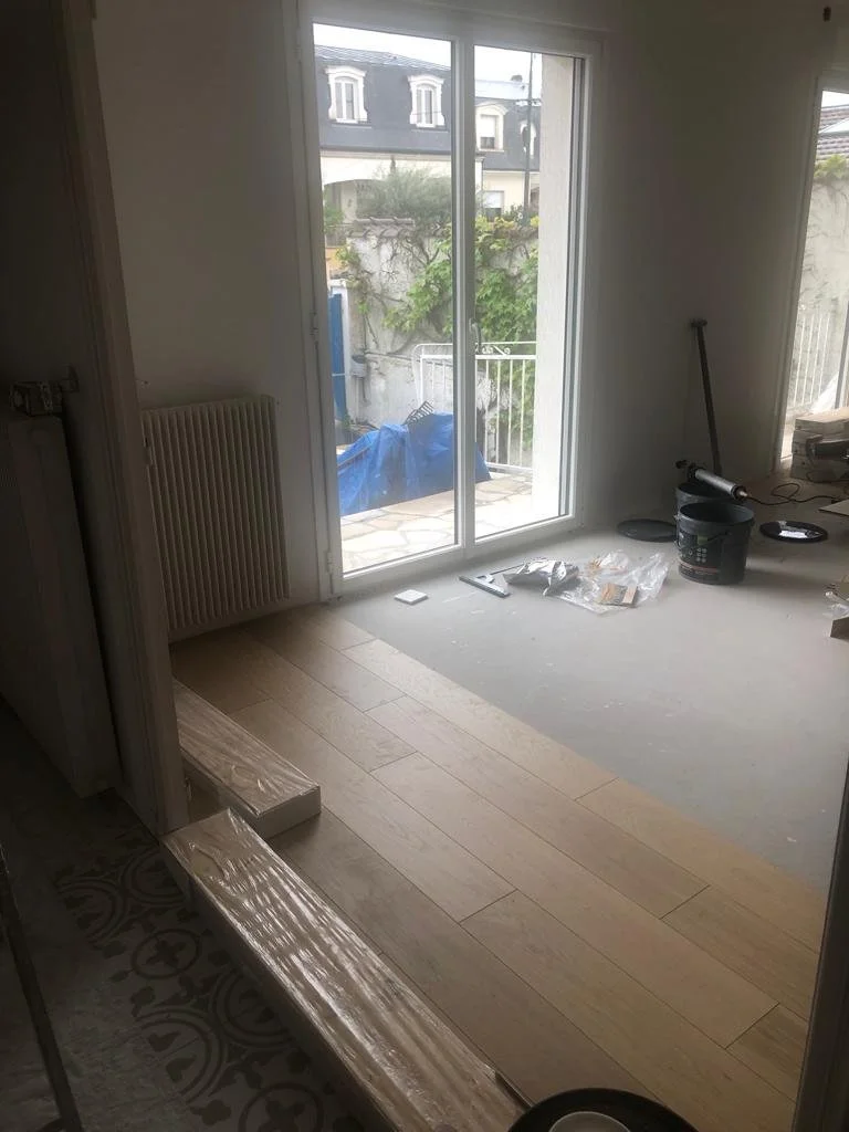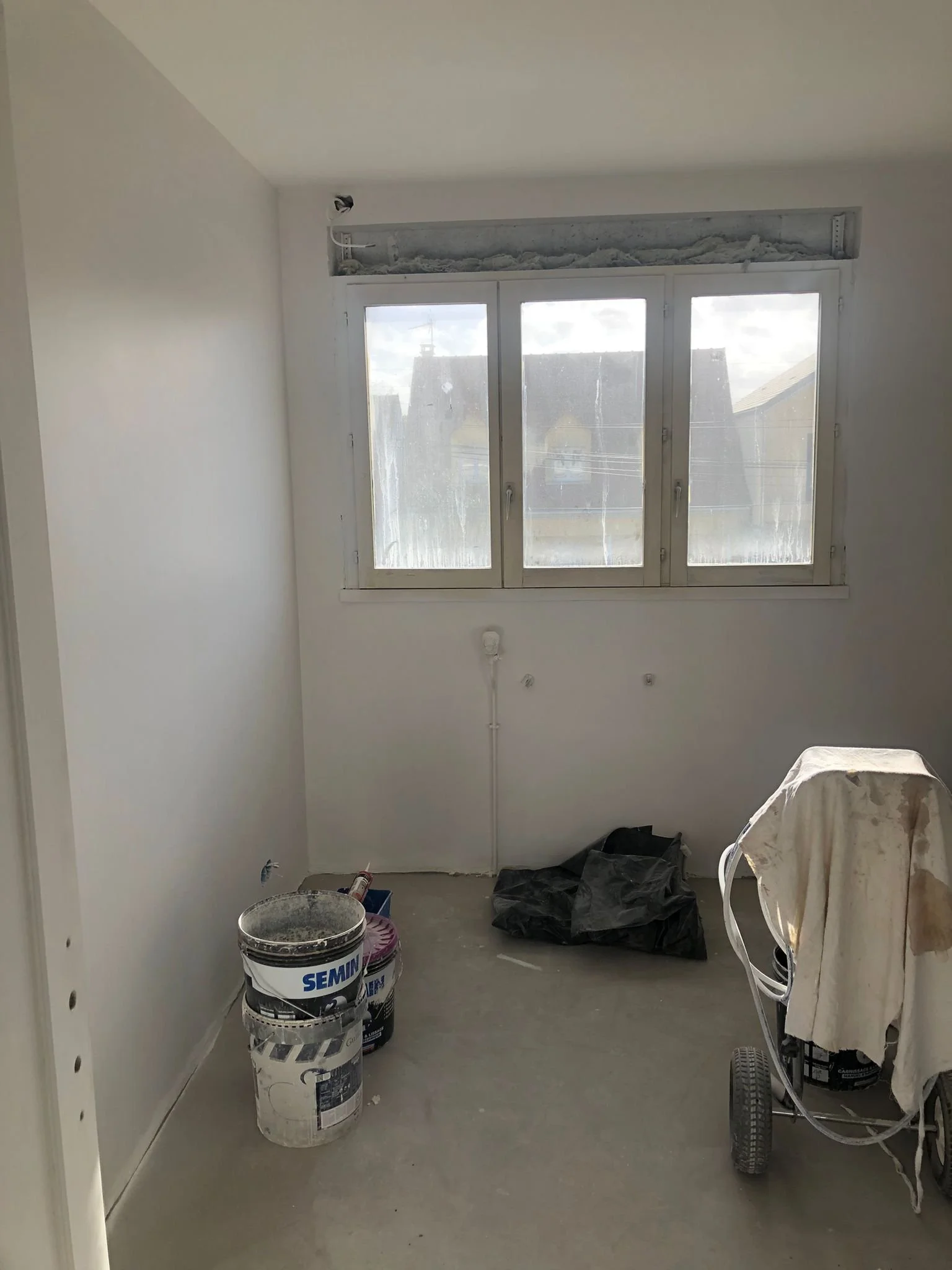 Côté suite parentale, les deux espaces salle de bain et chambre ont été réunis tout en conservant la séparation visuelle pour l'intimité mais en prolongeant la perspective et la lumière grâce à l'ajout de deux verrières en partie haute. Niveau chambre, une inspiration 30'S et scandinave avec un dressing de L250 x H236 x P60 cm ( modèle PAX ikea ) avec porte miroir, un coin coiffeuse et un bout de lit coffre pour rangement des coussins ( selon les désirs de la cliente ). Côté salle de bain : un espace WC suspendu, une douche à l'italienne de 80 x 160 cm, une baignoire ilot de 80 x 160 cm et un meuble double vasque ( gamme Neo chez Leroy merlin coloris Gris paris 2 ) de 120 cm. Un dressing côté chambre d'enfant attenante de L200 x H236 x P35 cm a été créé en empiétant sur l'ancienne salle de bain. Des niches maçonnées ont également été conçues dans l'ancien placard et font office d'espace bibliothèque et rangement pour les jouets.