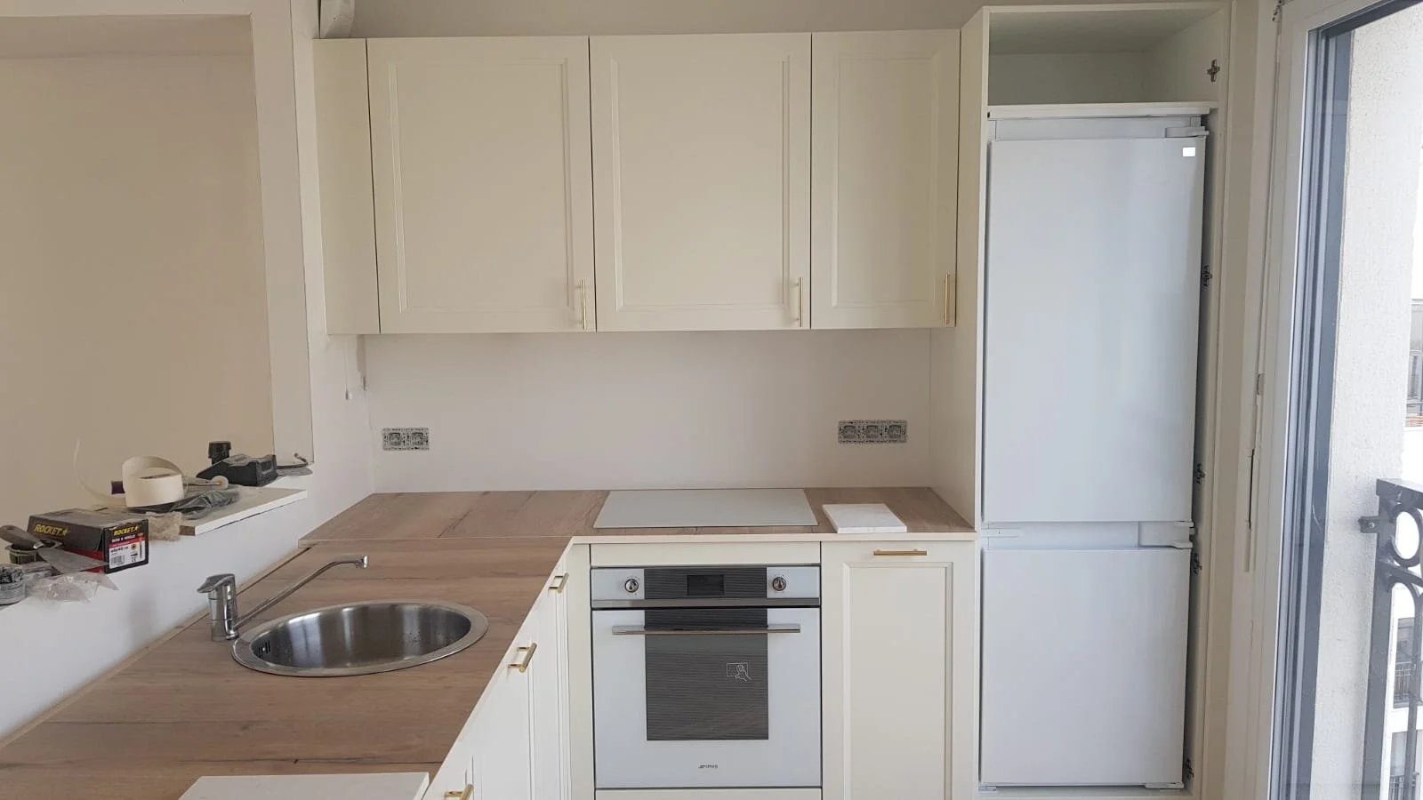 L’implantation initiale du promoteur desservait un espace en RDC avec une SDB et 3 chambres dont un WC indépendant. Au R+1 se situaient une SDB, une autre chambre une cuisine US et un petit espace salon. Nous avons totalement repensé les volumes et l’espace au profit de la fonctionnalité, et beaucoup plus en adéquation avec le mode de vie de cette famille avec un enfant en bas-âge. Désormais, deux espaces bien distincts avec en RDC un espace nuit distribuant 3 chambres, une SDB et une salle d’eau avec WC intégré. Au R+1, l’espace de vie principe a été totalement ouvert avec une cuisine US, un espace salle à manger et un coin salon, ainsi que l’ajout d’un WC supplémentaire indépendant avec lave-main intégré, avec une superficie totale de 57m2.
