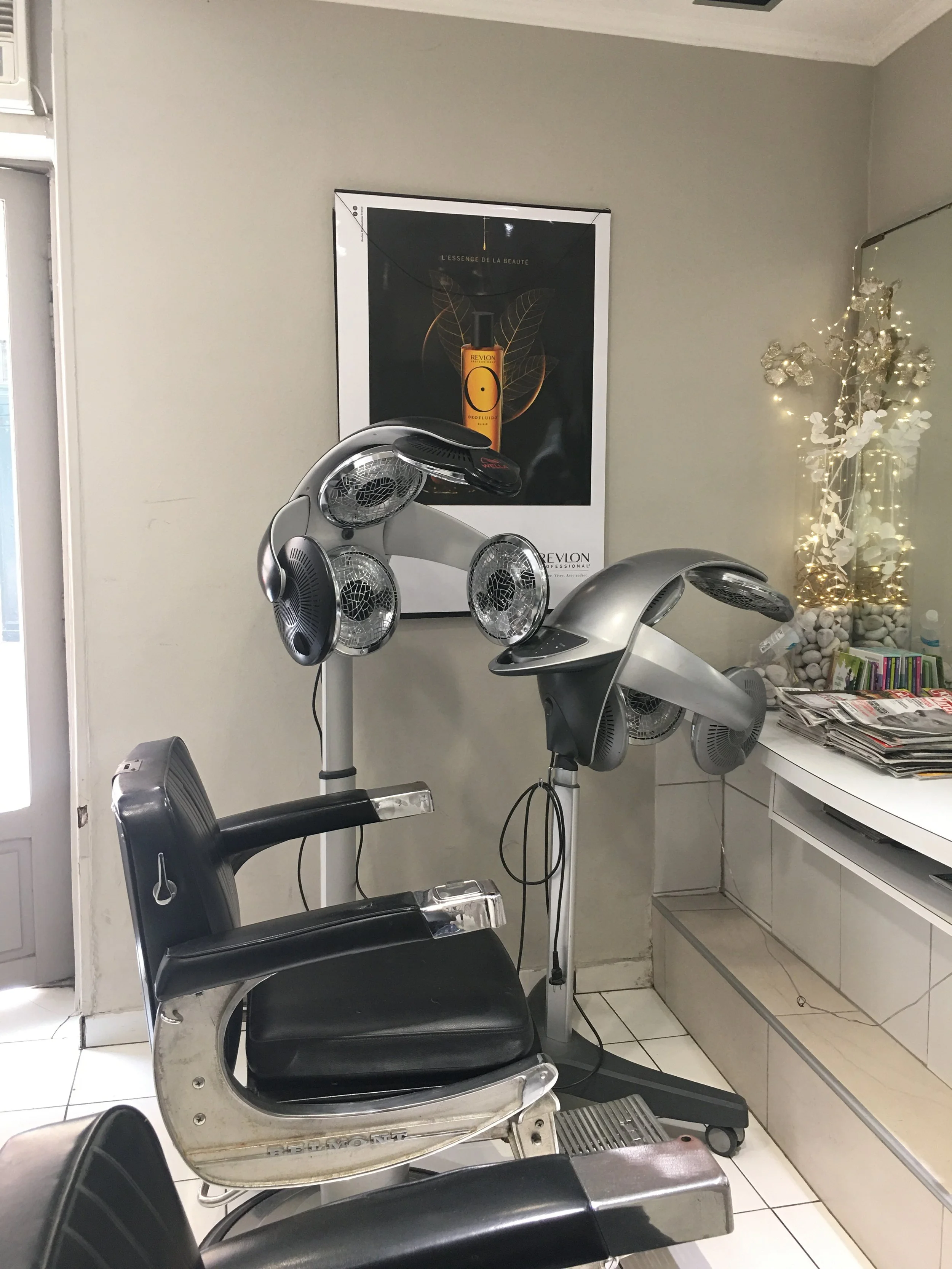 Un espace coiffure avec 5 postes de travail homme et femme.